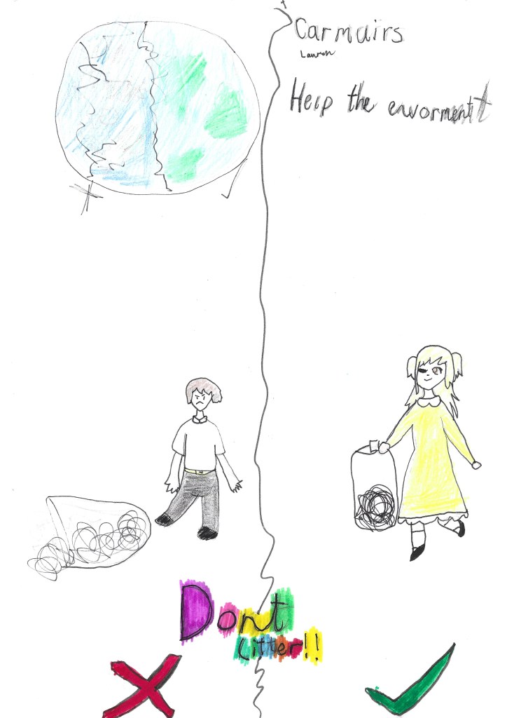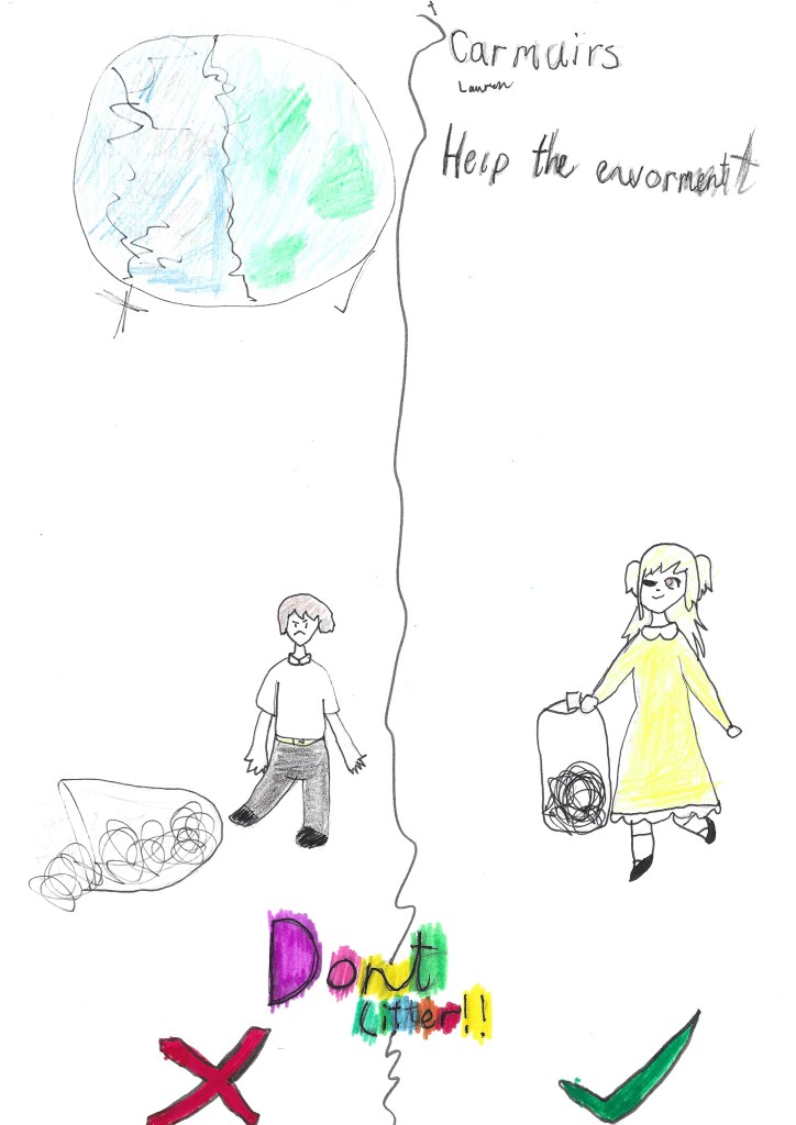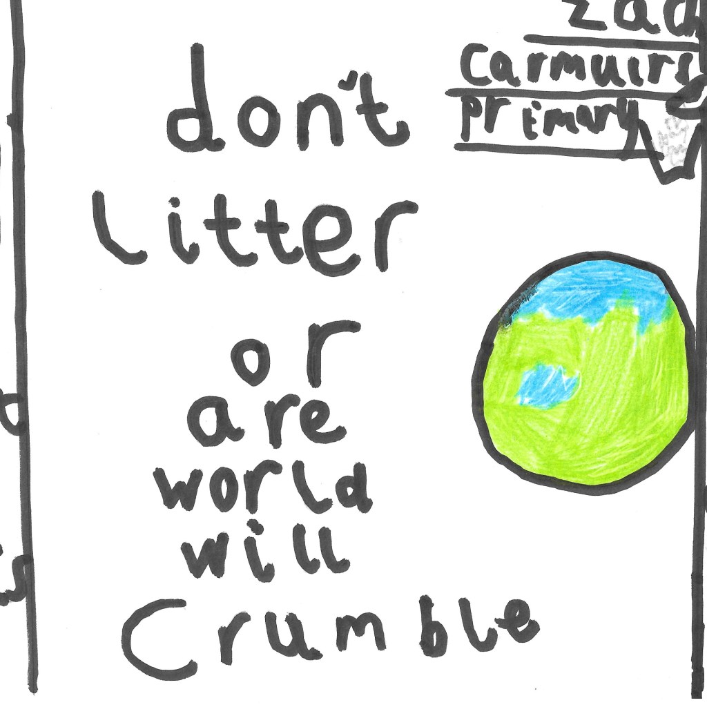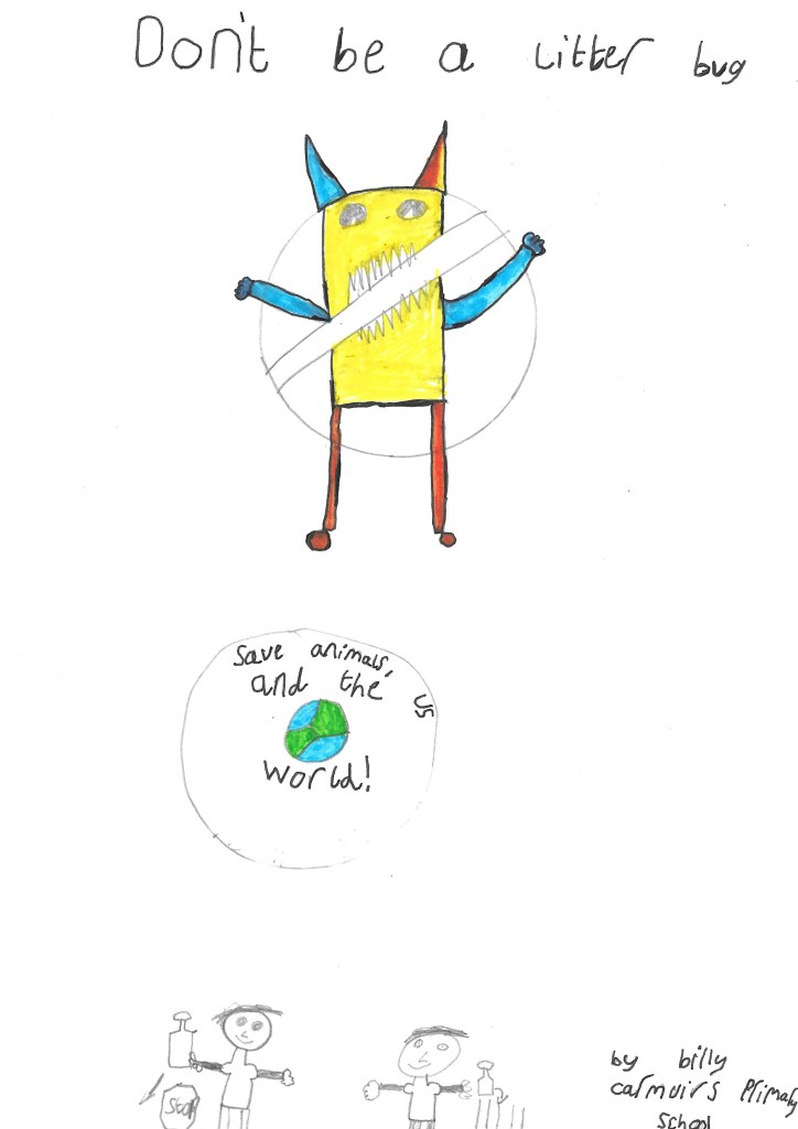 I am highlighting in this weeks blog the creative work of the Primary 7 pupils from Carmuirs Primary School. They are taking part in a local litter pick and survey and their art work and anti litter statements will be getting used as permanent signage on the streets and buildings around their school. I therefore wanted to use this opportunity to showcase their work and acknowledge and thank them for making a huge contribution to keeping Camelon and Tamfourhill #tidycleangreen