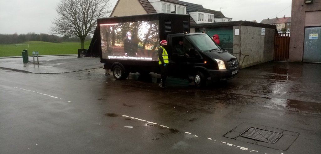 Over the weekend I was privileged to be involved with supporting the Camelon Winter Festival and the Big Screen Project in particular. Over Saturday and Sunday, I must have covered 15- 20 miles on foot supporting the Camelon Arts Project with their amazing touring film and Christmas entertainment. This was a marvel to behold and although the entire film was amazing, I personally really appreciated and enjoyed the Freedom of Mind Choir and Brian MacGregor and Geraldine Heaney’s: “A Fanfare of Giants” an emotive piece of art. This was a totally amazing production of creativity and what an incredible input from the volunteers on both days. The rains came big style on Sunday, yet the volunteers and the Camelon arts staff just kept going with good humour and total commitment. I enjoyed this tour of the area and I met some very interesting people and I would like to highlight the volunteers: Craig the cyclist, Ian, Stuart, Kevin, Kenneth and Lorraine and supported by Maria from the Cyrenians, Mark, Mina and Kevin from Camelon Arts, and our own Dan the supper efficient tea boy at CJFC, what a team “you will never walk alone”, and off course also a big thanks to Charlie who provided warmth and shelter in our time of need. Finally, the other strand of the Winter Festival was the visit of Santa in his horse drawn carriage and accompanied by his hard-working elves. I only passed the carriage on a couple of occasions but the children on the street that I saw were totally amazed, excited and overjoyed when the carriage toured around their street. The Winter Festival Committee produced an amazing weekend despite the challenges of COVID, the amount of work that must have gone into this is massive and I would like to acknowledge and thank: Anne, Babs, Chris, Mary and Liz and my apologies to anyone I have missed because this was such a fabulous team effort that produced such an amazing festive experience for the community.