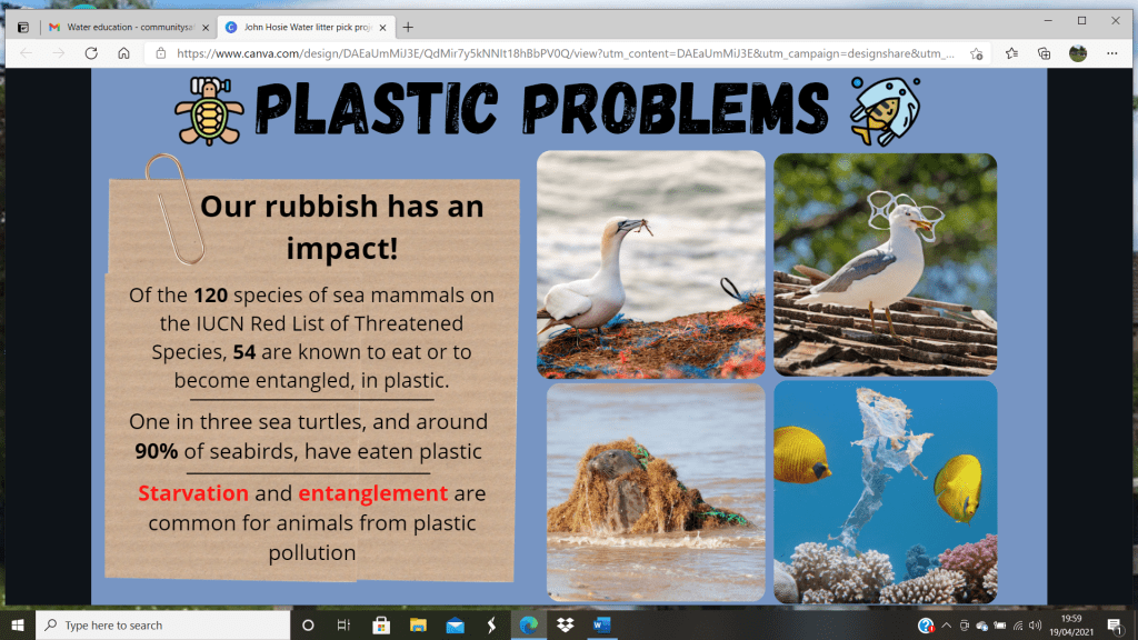 Thanks to Ella Gorman at Falkirk Council Waste Services for producing and presenting the above slides on Plastics and world pollution.