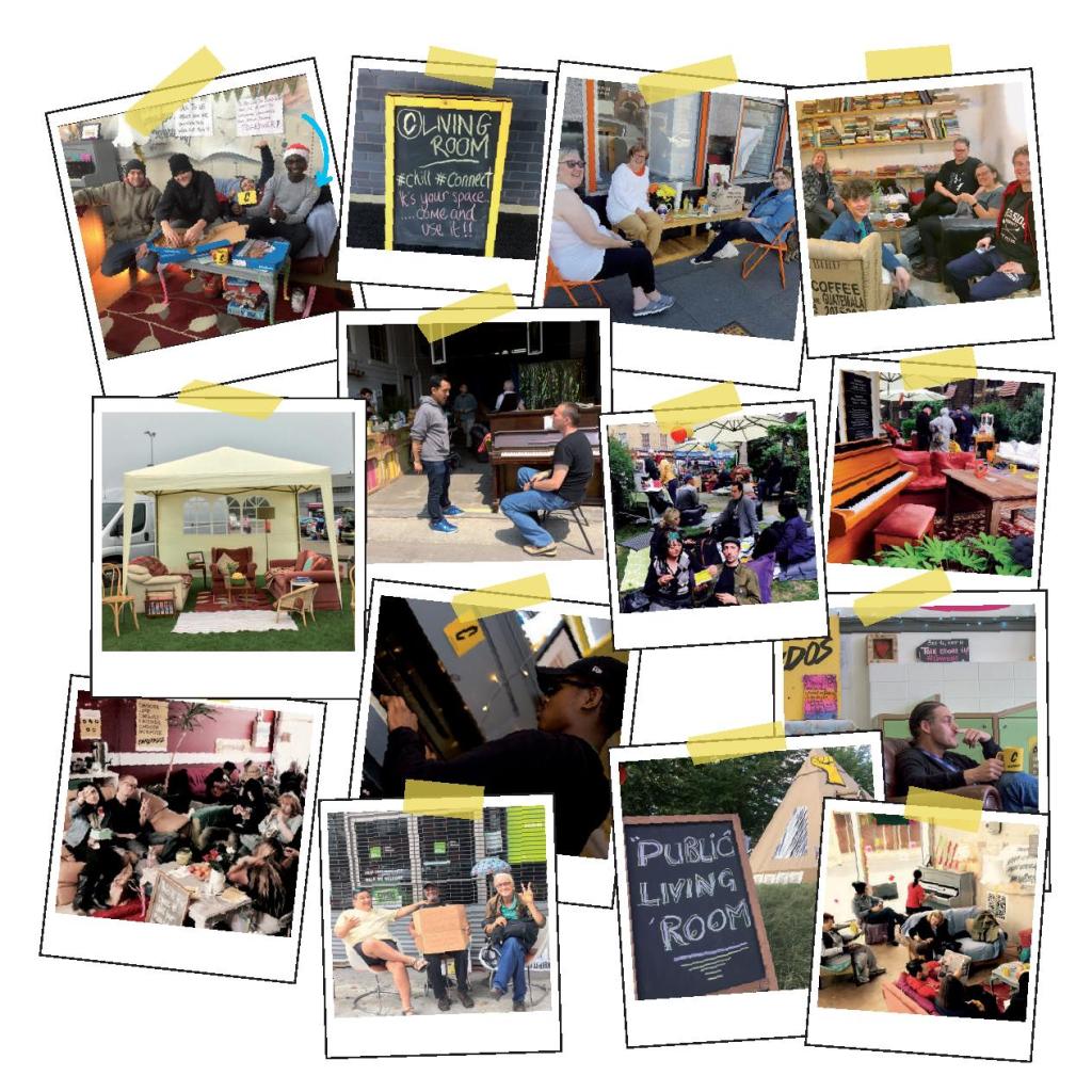 But what is so special about these public living rooms? Aren’t they just another café? Well basically yes apart from these are usually free. They’re a place to gather, chat, drink tea and eat biscuits. But more than that, they’re a place to be more human. If you’re in any doubt, have a read of this account from a Public Living Room down south that even explains why there’s a Connect 4 game in the box: