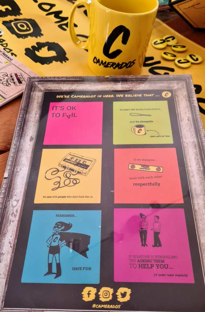 Camerados operate through 6 principles as shown in the image below but I’ll explain them too: