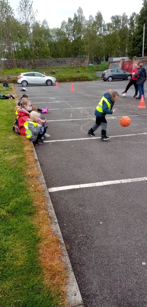 Primary 3 came up with their own chalked out assault course which involved different challenges as you worked your wat through the chalked-out course on the ground. The class were divided into teams of three and were timed as they worked their way through all the different tasks and skills they were instructed to undertake. The game finished with a slow-motion crab race where the winner was the person who managed to go so slowly that they were last, congratulations to Ms Paterson the class teacher who won this race by a few pincers. I would intend to include some sort of street games and safe play areas for local children as we go forward with the community safety strategy and the session at the Juniors Car Park was extremely helpful with illustrating how existing community spaces could be better used and adapted for wider community benefit. Thanks to Mark form the Camelon Arts Project for his comparing of these street games, I enjoyed this session very much and again Primary3 pupils were a credit to their school and their local community.