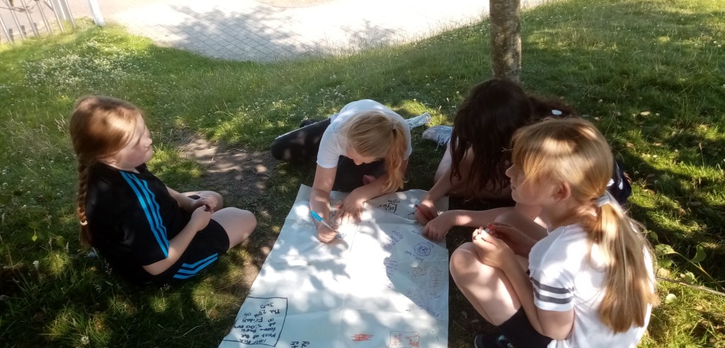 An interesting and refreshingly positive aspect of the Canal Clear ups has been the young peoples workshops which have concluded the days clean up work on both the canal and the towpath. The group who took part on Wednesday 21st July were tasked with thinking about where they lived and the places they played with their friends and to then consider some of the environmental issues at these places and to come up with their own plans and ideas for keeping these special places #tidycleangreen. I was really privileged to hear about all the locations the youngsters went to and were important to them, from the Roman Park in Tamfourhill, the places with the special named stones in Rowen Crescent and the skatepark in Falkirk. The group who were aged 8 -11 years old worked in groups of three or four and here is a taste of their ideas and creations for improving and keeping their special places #tidycleangreen, so don’t be surprised to see some of these projects becoming a reality and actually happening over the coming months.