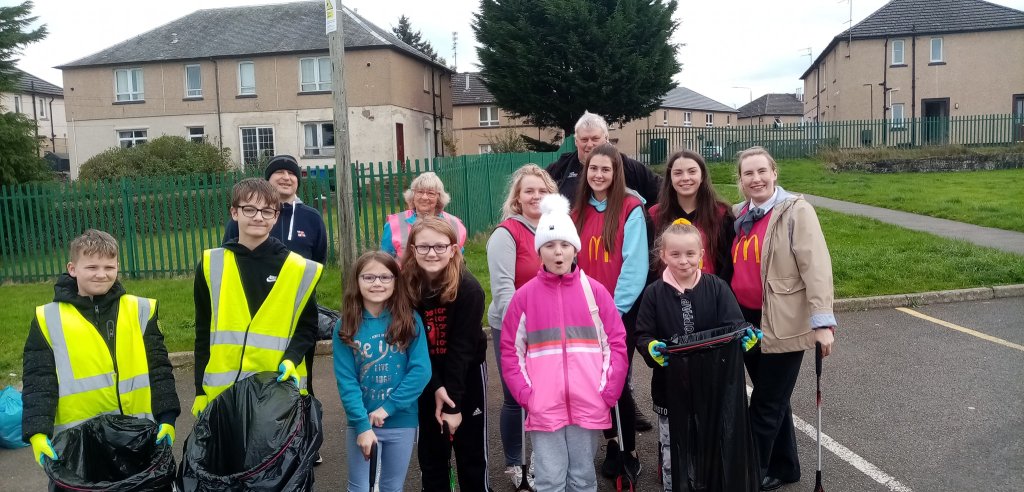 Tamfourhill Youth Group with the assistance of McDonalds Restaurants on Glasgow Road carried out a litter pick at the Juniors Car Park on the morning of Wednesday 13th October, and this was greatly appreciated as it fully prepared that location for the Gather and Play event scheduled for the Friday. The Group worked tirelessly to clear the area of rubbish. McDonalds who are taking their commitment to keeping Camelon and Tamfourhill #tidycleangreen very seriously and they awarded the group and the volunteers with a complimentary lunch and drink back at the restaurant. A big think you to Rachael at McDonalds for her hospitality and also thanks to the hard work of herself and staff team to help the youth group rid the CJFC car park of detritus , rubbish and fly tipping, and yes, we did find a McDonald’s drinks cartoon in the bushes, and it was duly removed and binned.