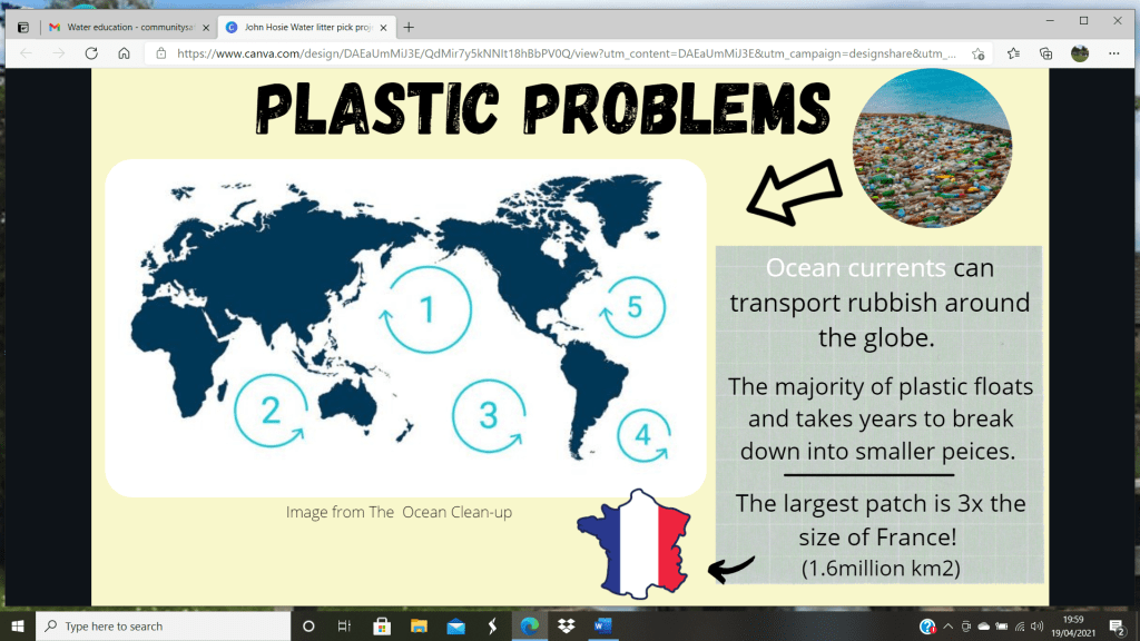 Back in April of this year I supported a groups of young people from Camelon and Tamfourhill to take part in canal clear up day which also involved an environmental learning workshop , let’s look back to an earlier blog when I noted the following: A recurring theme throughout the Canal clear ups was how our littering actions locally actually impact upon the world globally and then come back to affect the quality of our lives locally. A big circle of environmental damage and pollution that will affect every one of us in our daily lives. The young people who took part in the workshop sessions held at Tamfourhill Community Hub came up with highly creative ideas about how we can start to reduce the damage that we are causing by our constant use and dependency upon plastics. Their ideas are detailed in this blog of 20th April 2021 https://opcamelontamfourhill.co.uk/2021/04/20/
