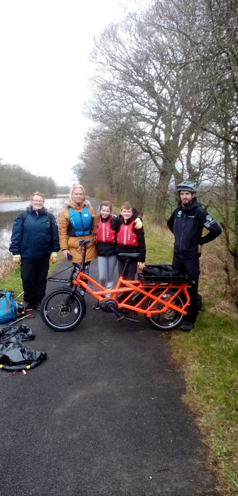 It was a pleasurable couple of days during the school Easter holidays that I spent on the canal with the Tamfourhill Youth Groups, who as always went about the paddle pick up and tow path litter picks with enthusiasm, good humour, and a total commitment. Forth Environment Link kindly supported the Groups littering picking work by providing an E-Cargo bike and cyclist who made a big difference to the workload by transporting the collected rubbish from both the canoes and the tow path back to the Falkirk Wheel. This was eco-friendly transportation and community conservation work at its best. There will be further news about the use of the E-Cargo bike with a new project being supported and developed by Tidy, Clean and Green which I will write about in next month’s community safety bulletin. The additional aspect to this year’s canal clear- up programme has been the introduction of the John Muir Discovery Award and I would like to thank Emma at TCV, and Anna form the Councils biodiversity team who supported and facilitated conservation activities to fit with the Award. We spent an afternoon tree and bulb planting in Easter Carmuirs Park and had a fun time playing group nature games and making up nature cards the following week. I am really pleased to be supporting these young people undertake their John Muir Awards.