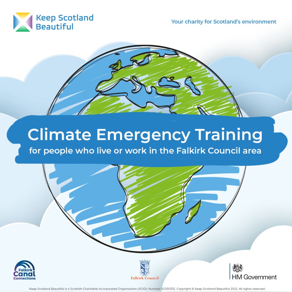 Keep Scotland Beautiful are offering free 90 minute online Climate Emergency Workshops for people living or working in Falkirk, with workshop dates available to the end of September.