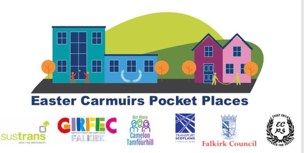 - Easter Carmuirs Pocket Places Project: This project has community safety at its very core and its implementation was recently announced by the Easter Carmuirs Primary School Parent Council: After a long wait, we can finally share some exciting news with you As many of you know, the parking problem both outside the school and inside the school has been an ongoing problem for years. After discussions with the school (who in turn contacted the council) and the police, our ideas to rectify the problem were rejected. We then contacted Our Place Camelon & Tamfourhill who suggested an application to Sustrans. Sustrans is a charity committed to creating green spaces and improving active travel routes in the UK. With help from OPCT, our application was successful, and we have been awarded £45,000 for the project. The project is now fully underway and will likely continue until the end of the school year. The school is completely behind the project and pupils will be involved in the discussions around how to make their journey to school safer. Parents and local residents will also have opportunities to view potential designs and have their say. We hope the result will be a safe and accessible route for our children to get to school and will offer parents some peace of mind. I look forward to seeing the designs and plans for adapting the road lay out around the school and the creation of new visual installations which will all contribute to a safer travel experience in and around the school and the neighbouring community.