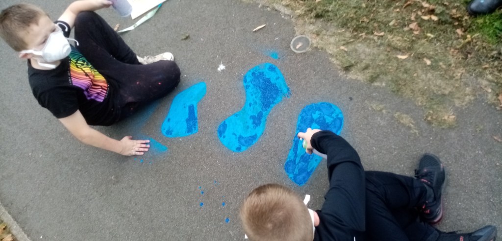 I have been supporting this Arts project over the last year, the initial idea had been developed by community artist Mark Bleakley and it has been further rolled out with the support of the Camelon Arts Project. We were at Nailer Road Park last Wednesday where we were joined by an enthusiastic group of young people who spent the afternoon creating their own version of the All Games Allowed ground based creative games court. We appreciated the support of the Nailer Park Tenants and Residents Organisation who came along and helped out, and the young people came up with some colourful crazy designs and ingenious games, the photos illustrate their temporary creations made with the spray chalks and gaffer tape.