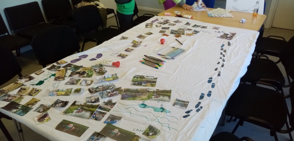 The different activities the group carried out to explore these wild places: Exploring the canal on canoes, walking along the towpath, and collecting items for their nature boards, playing group games in the park like predator and prey, having hot drinks in the woods and having marshmallows on an open fire and using a Kelly kettle, filling in tree and leaf identification sheets, walking through the woods and collecting leaves, berries, and nuts and completing a John Muir nature observation alphabet session.