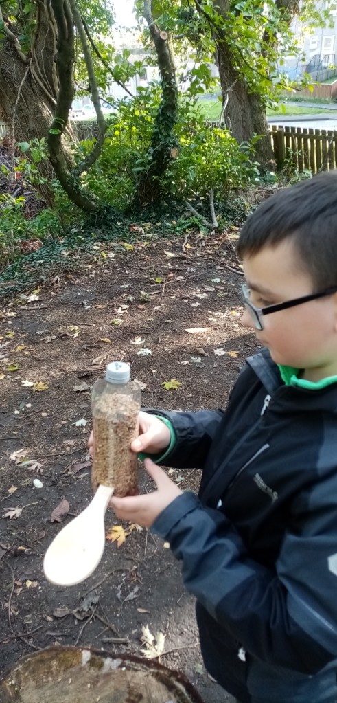 Conserving a wild place and how the Group took responsibility, what they did to make a difference and give something back to wild places: The group carried out paddle pickups and cleared rubbish, litter and plastics from the canal, they took part in litter picks along the canal towpath, planted fruit trees and bulbs in the Easter Carmuirs Park, made wild seed bombs and flung them about the grass area of the Park to create wild flower meadows for birds, bees and butterflies, made bird feeders for the local woods and planted seeds in pots to encourage biodiversity in the hub growing area.