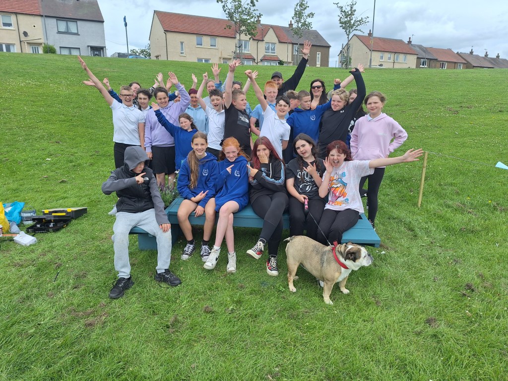 On Wednesday 18th June we had the pleasure of attending a Picnic in Easter Carmuirs Park to celebrate with family , school and community the installation of the new Wild Bench. SCYAP had over the last 3 months worked with the P7 class at Easter Carmuirs Primary School to design a seating bench with a planter which was to be located into the play park within Easter Carmuirs Park. The young people designed this Wild Bench which in addition to providing some much-needed seating for the play park also encourages biodiversity through helping local nature and the wildlife that lives in the park. Our Youth Action approach is always concerned with facilitating multiple benefits for both local young people and the wider community, and in this Project the park and local families will now be able to enjoy this new facility when visiting the park, the participating young people have all gained Dynamic Youth Awards through their participation and there is also the additional benefit for the local environment and its biodiversity. The young people have designed the benches with wild nature in mind, and this is reflected with the artwork which decorates the bench and planter, and through planting pollinators this will truly be a Wild Bench for Easter Carmuirs Park.