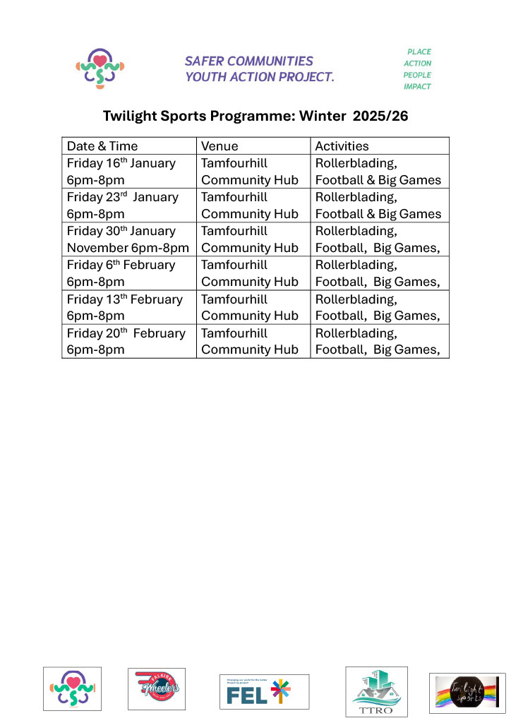 The Programme continues through January and February every Friday from 6pm-8pm in Tamfourhill Community Hub , with Dr Bike in attendance on Friday 30th January and 20th February. Its all free for 10-16 year olds.