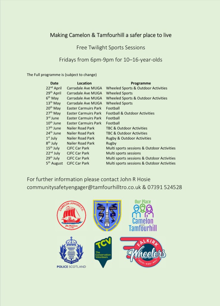 - Safer Streets Youth Action throughout Camelon and Tamfourhill: