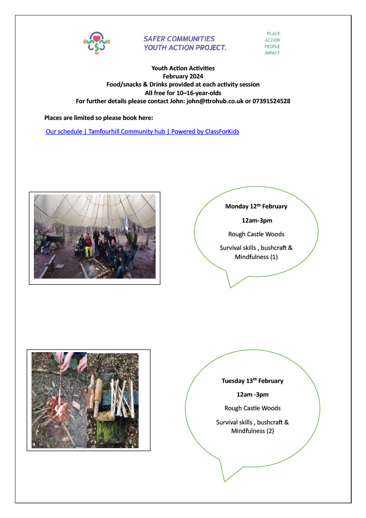A 2-day programme is available on Monday 12th and Tuesday 13th February for learning Bushcraft and Survival Skills with an element of nature-based mindfulness. A few young people started this programme back in November last year through the twilight sports programme when we ran a session in the woods at Tamfourhill, however anybody can still join in and book onto the programme. A certificate of achievement will be awarded to every young person who completes the programme. This will be happening at Rough Castle Woods and will be delivered through our ongoing partnership with the Well Wild – A Therapeutic approach to Forest schools and Bushcraft. This is a great opportunity to learn an array of life skills through the outdoors and build up your knowledge and experience of survival skills.